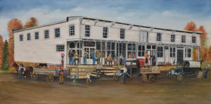 Artist Dennis Thrasher was commissioned to create two artworks depicting key moments in the history of the Creelsboro valley. “Irvin Store, 1920s,” shows the Irvin Store, once located in Creelsboro, on a Saturday afternoon in the fall when the valley’s population was at its peak. Artwork Credit: Dennis Thrasher. Copyright: Kentucky Archaeological Survey, 2019.