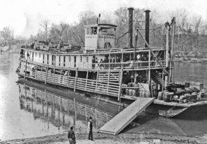 The Rowena was one of the last steamboats to serve communities along the Upper Cumberland River from the 1910s until it sank at Greasy Creek Sholes in 1934. Residents of Creelsboro valley relied on steamboats for travel and trade before paved roads and the construction of Wolf Creek Dam in the 1940s. Credit: The Porter Family.